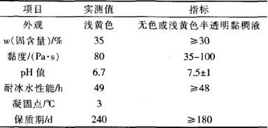 (3)由最佳工藝條件制成的改性PVA商標(biāo)膠,其外觀呈淺黃色半透明黏稠膠液、耐冰水時(shí)間為49h、凝固點(diǎn)為3℃ 、黏度為80 Pa·S、保質(zhì)期為240 d和pH值為6.7。